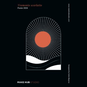 “Tramonto Scarlatto” è un’illustrazione artistica che traduce in forme e contrasti la magia del sole che cala all’orizzonte.