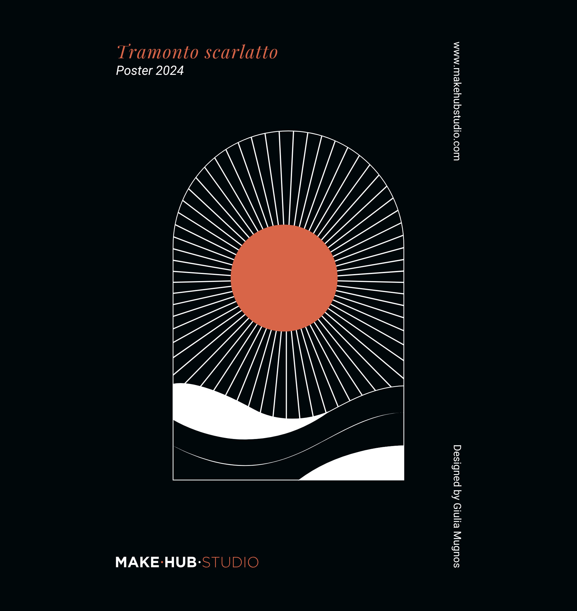 Disegnata da Giulia Mugnos per MakeHub Studio, questa stampa unisce minimalismo geometrico e intensità cromatica, evocando il calore e la quiete di un tramonto senza tempo.